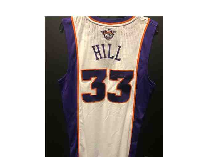 Bid now to win this throw back white #33 Grant Hill Suns jersey autographed by Grant Hill. The jersey is a size large