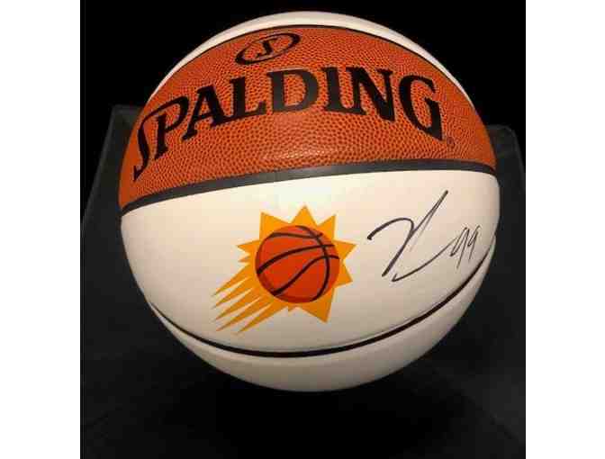 Bid now to win this Spalding basketball autographed by Suns forward Jae Crowder. The basketball is leather with white signature panels and the Suns logo.