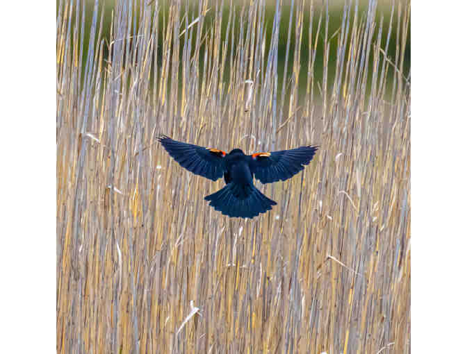 "The Red-winged Blackbird seems to love the Phragmites, found in this case on the marsh opposite Adamsville Landing near the north end of the West Branch of the Westport River. This is Spring and these beautiful birds are one of our earliest reminders of it." - Photographer Greg Stone