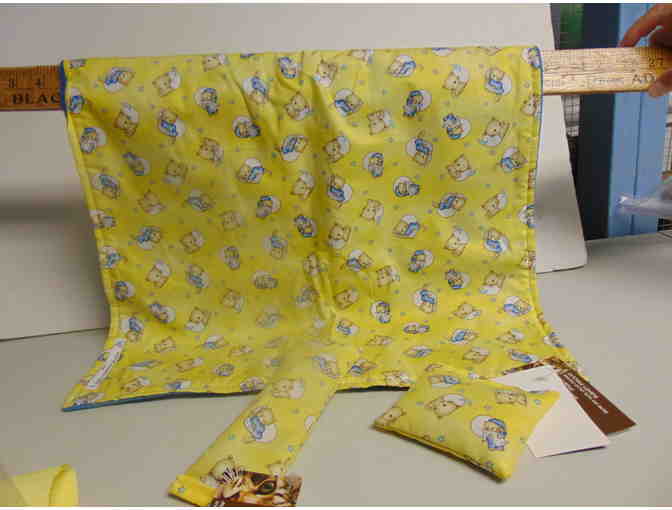 Catnip Blanket is 17"x23 1/2" and has two matching catnip toys.