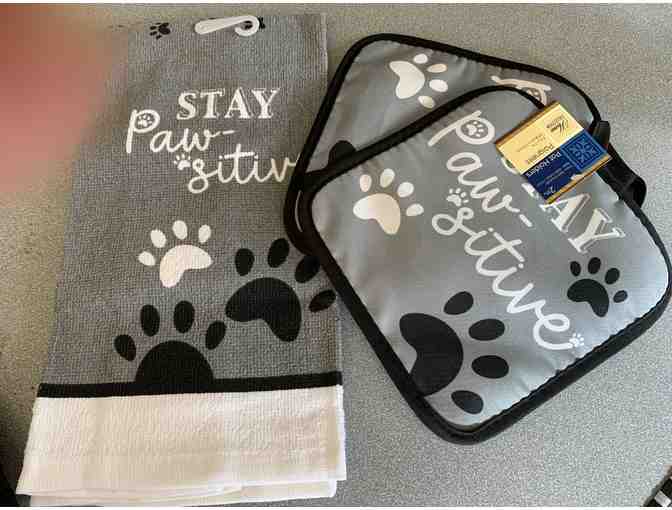 Stay Pawsitive Kitchen Towel and Pot Holder set