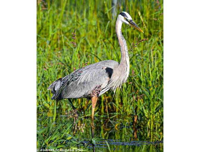 "This is why I like Great Blue Herons, he has been hanging in the small pond near my house this week." Robert Feingold. Framed 11" x 13" photograph by Robert Feingold.