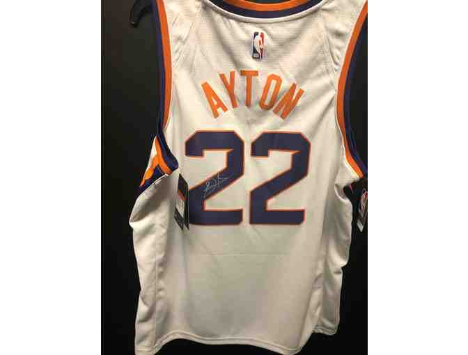 Bid now to win this Phoenix Suns swingman white jersey autographed by Suns center Deandre Ayton. The jersey is a size large.