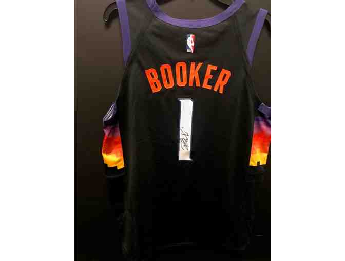 Bid now to win this Phoenix Suns authentic jersey autographed by Suns All-Star guard Devin Booker. The jersey is a size large.