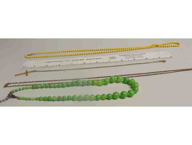 Four vintage necklaces. One with cross pendant. Donated by Eunice Richmond