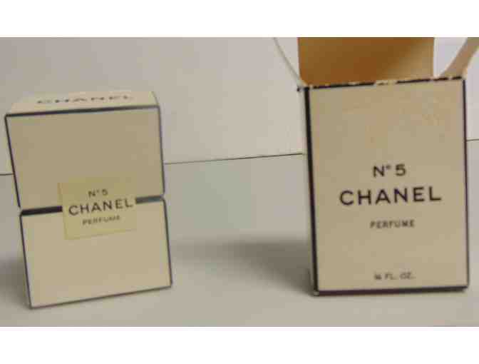 Vintage Chanel No. 5 Collectible Perfume in original box and still has the seal on it. It is a small miniature bottle in original box but I cannot show you the bottle as I do not want to break the original seal still on it. Great collectible. Donated by Laura Levine.
