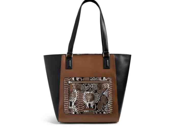 Hidden pocket at the top seam for keys or phone. Front features a slip and a zip pocket. Two interior slip pockets and a zip pocket. Breakaway zip-top closure.