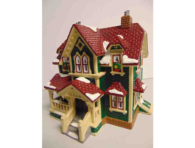Lighted Dept. 56 Snow Village 'Hartford House'. Handpainted ceramic. 9" x 9". Click on photo to see two different views of this collectible. All Snow Villages either have lighting or you can add your own lighting inside this piece.