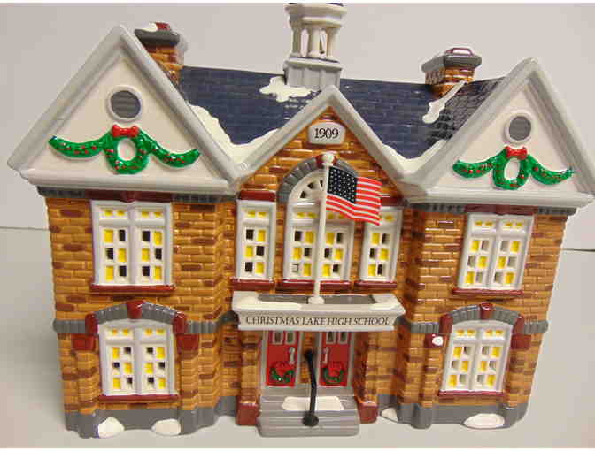 Dept. 56 Snow Village Collectible -'1996 Christmas Lake High School'. In original box. 9 1/2" x 8 1/4". Click on photo to see three photos of this collectible.