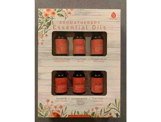 what's included: frankincense for stress relief, lavender for relaxation, peppermint for recharge, rosehip for anti-aging, sandalwood for focus, tea tree to soothe