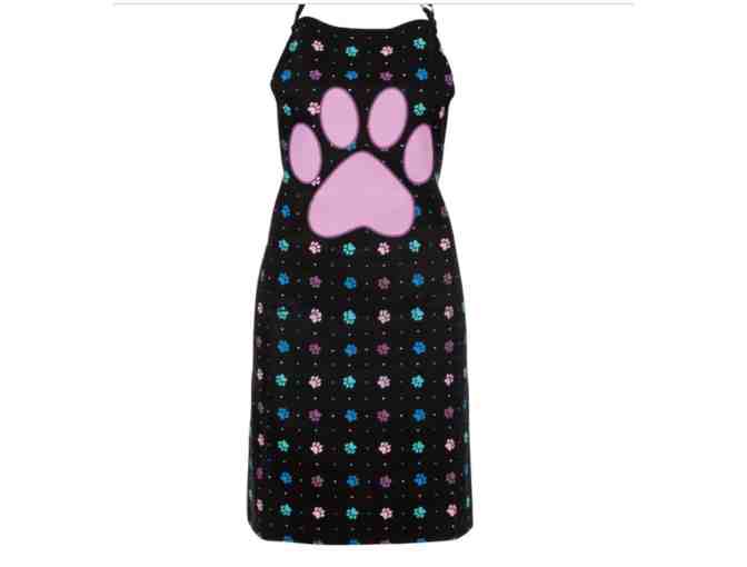 Patterned in a playful grid of multicolored paws, this pocketed piece is a kitchen necessity! Lending a helping paw in the kitchen, this black cotton apron keeps your clothes mess-free while keeping thoughts of your furry friend at the forefront.