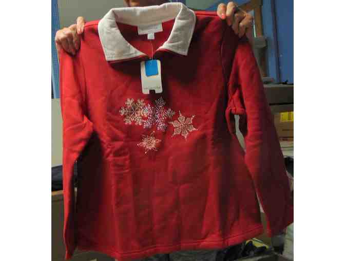 This cute sweatshirt is a Petite Large. Donated by Jo Ellen Dobos.