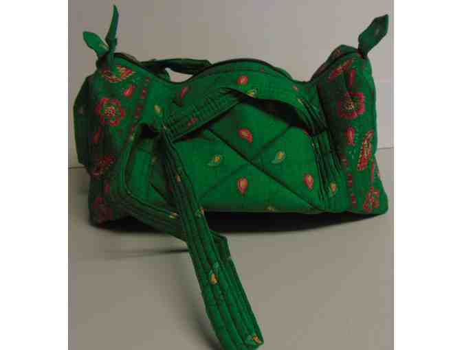 This handbag has two inside pockets and measures approximately 13"Lx8"T. Pierre Deux handbag. Zipper outer closure.