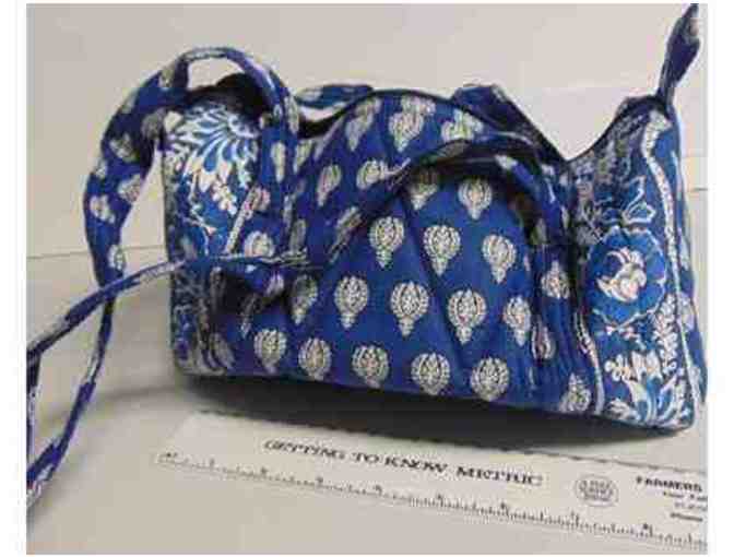 New Pierre Deux handbag has two inside pockets; zipper closure; and measures 10"x7".