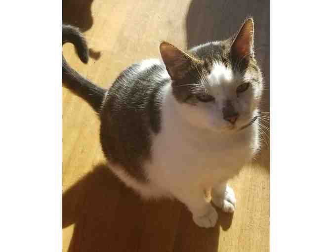 Spencer is a BIG boy (did I mention he is BIG??) and he was abandoned on our sanctuary property quite a few years ago. He was so very scared outside, but Wanda sat outside with him and now, all he has eyes for his his momma Wanda. He has no interest in being buddies with the 'vet gals' who come in daily or anyone else. Just Wanda. Your winning bid will sponsor him up to three months.  He says he needs treats and never wants to be outside ever again. Thank you for helping to sponsor Spencer.