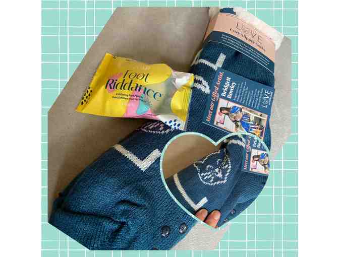 "Foot Riddance" is a foot polishing pebble, to help you get your feet soft and smooth, before you slip them into these cute kitty slippers!