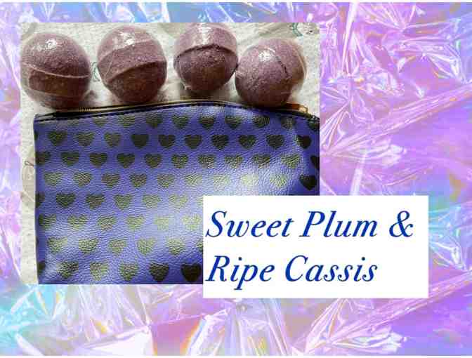 Sweet Plum and Ripe Cassis make this hemp seed and epsom salt bath bomb TDF! Four fragrant baths in a pretty purple gifting bag.