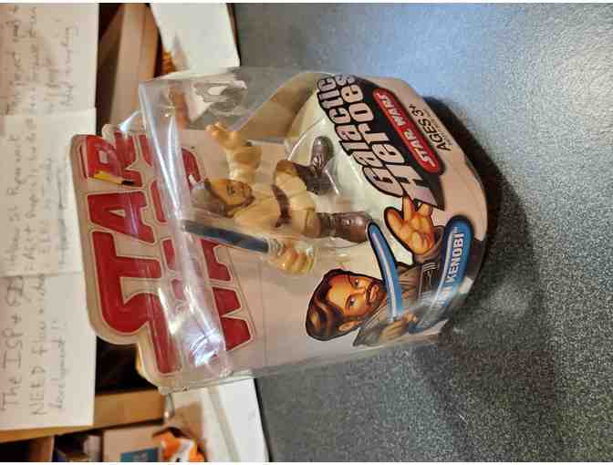This is a Star Wars Galactic Heroes Obi-Wan Kenobi issued by Hasbro Canada in 2009. It is just over 2" high and comes with a light saber.