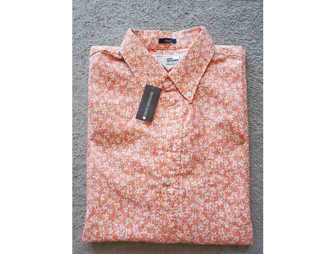 An orange Hawaiian Pullover shirt with white flowers. Short-sleeved with breast pocket. Brand Reyn Spooner. Men’s Size Large.