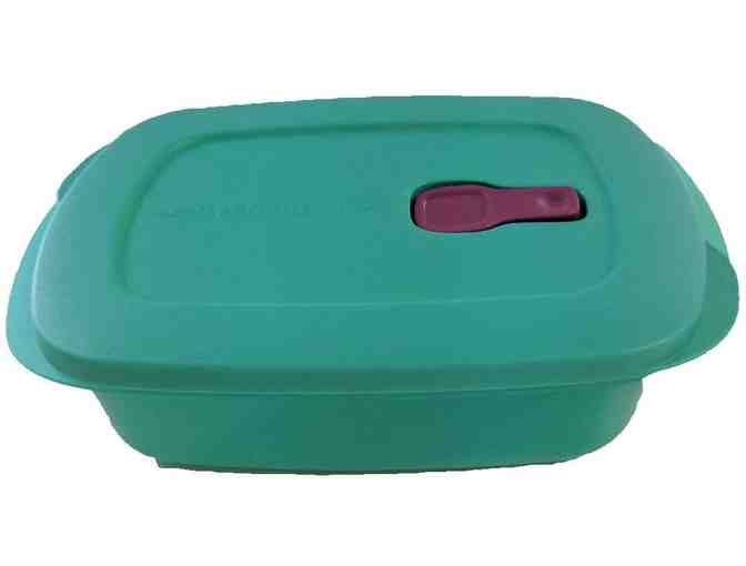 Microwave safe, BPA-free Tupperware container is an ideal pack and go meal solution! Perfect for individual or family servings of your favorite foods, including veggies, pasta, casseroles, and desserts. Simply pop the vent and leave the seal in place to prevent spills when reheating. The microwave-safe plastic container features a textured, scratch-resistant bottom, while the PLUS stain guard coating on the inside protects your container. Rectangular 4 cup capacity.