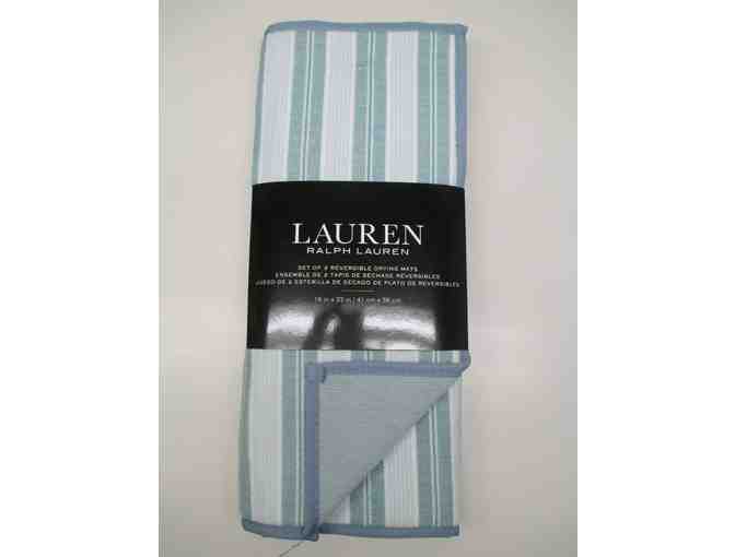 Set of two 16 x 22 inch reversible drying mats. High quality absorbent microfiber exterior with polyurethane foam filling. Cushions stemware and dishes. Machine washable.