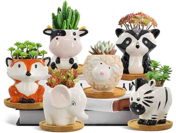 Mini ceramic pot with drainage hole and bamboo saucer. Plants not included. Approximately 3 x 3 inches. Perfect for small succulents or air plants. This listing is for the zebra in the picture.