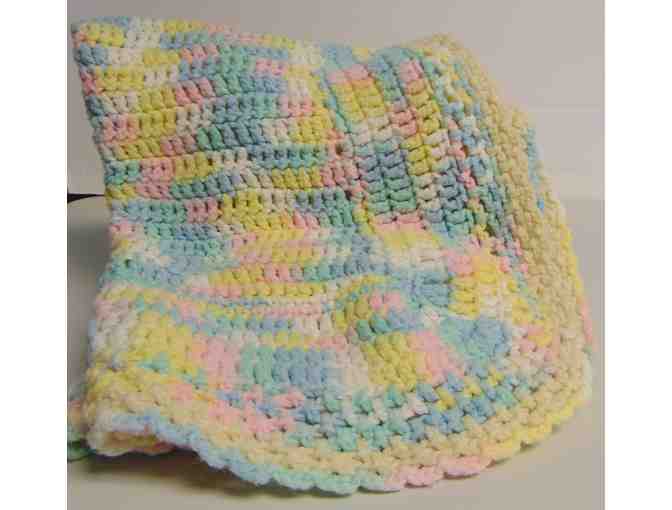 Crocheted baby blanket donated by Kathy McEnnelly.