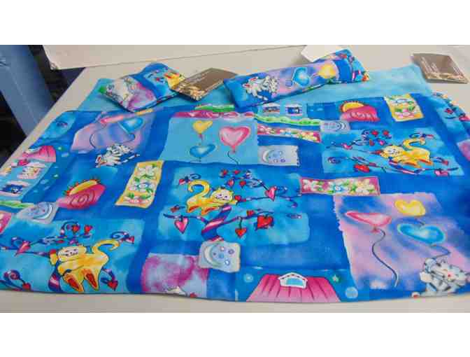Catnip Blanket. Beautiful print and soft flannel. The reverse side is a coordinating fleece. Each blanket has a generous hand full of Organic Catnip grown in Washington State