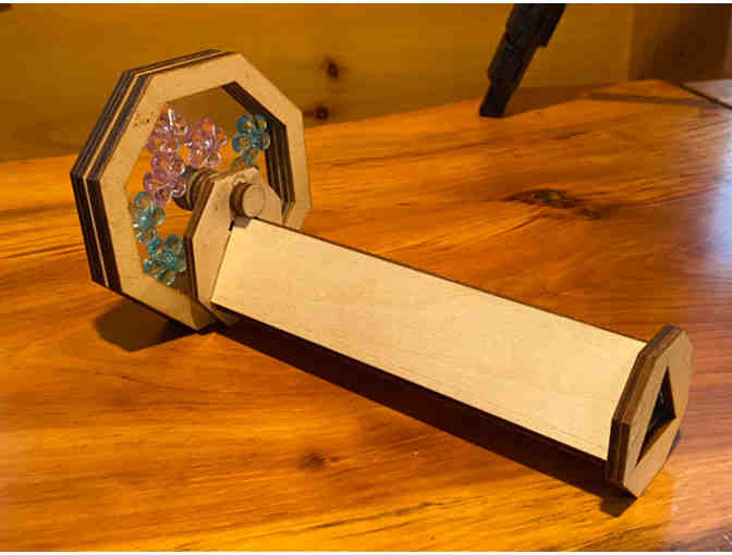 This wooden kaleidoscope (made by an AECT Past President) is special in tree ways. 1) it’s a great way to teach some simple science concepts. 2) It can and will be personalized with a loved one’s name, and the rotating display is held on and held together by magnets, so the contents can be changed to incorporate flower petals, leaves, bugs, etc. (Great to inspire creativity.) The donor will personalize for the winning bidder.