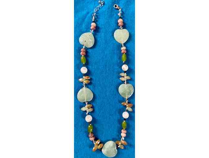 Vintage light jade heart necklace with mixed crystal and bead necklace.