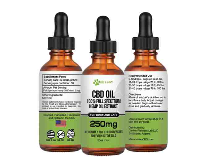 Max and Neo CBD's 250mg CBD Oil is a pure full spectrum organic hemp oil extract made from top grade hemp from Colorado, USA. The 250 mg bottle is great for small and medium sized dogs.