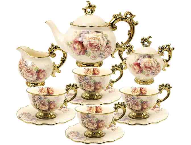 Fanquare 15 Pieces British Porcelain Tea Sets,Flower Vintage China Coffee Set