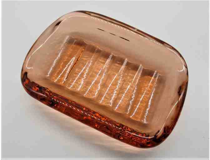 This beautiful Fire & Light soap dish is copper colored. Add this to your collection of Fire & Light copper items. Good condition, no noticeable bubbles.