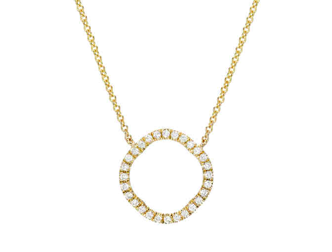 Diamond pendant designed by Edward Avedis, jeweler to the stars. Created from the signature Astra design. Handset in 18k yellow gold with 0.30ctw diamond. Includes 16” ,18k yellow gold chain. The pendant is approximately 15mm diameter. Package includes a $500 gift certificate to Edward Avedis to be used towards the purchase of a new item.