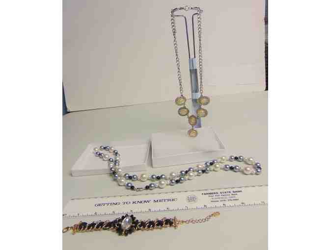 Unique Bracelet and Two Necklaces donated by Colette Helin.