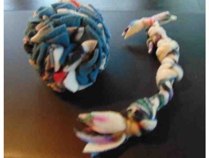 One fleece cat toy ball is 3 1/2" and your cat will love it. They will enjoy the rope toy as well.
