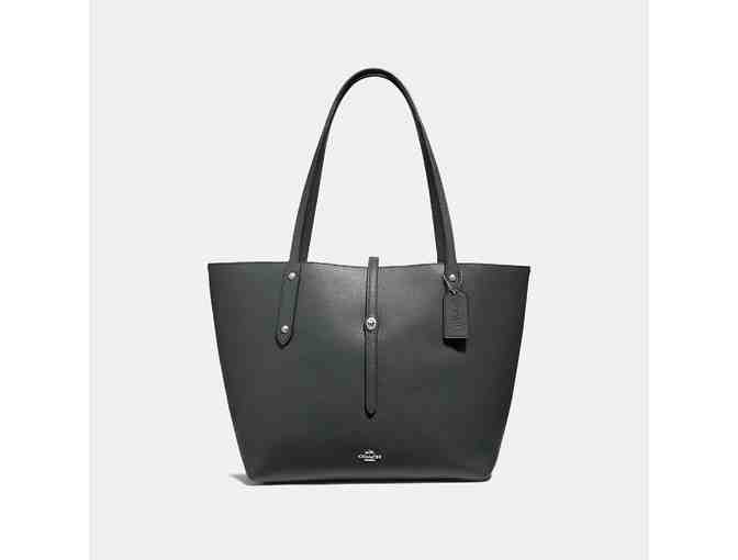 Coach Market Tote! Crafted of polished pebble leather - midnight navy this endlessly useful bag secures with a slender strap and a Coach turn lock. ; Polished pebble leather Inside zip pocket Turn lock closure, leather lining Handles with 26cm drop 31.5cm (L) x 28.5cm (H) x 15.5cm (W).