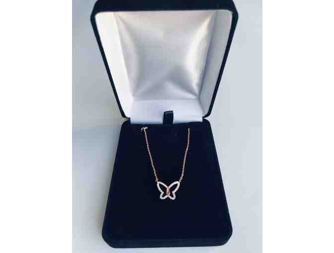 14K Rose Gold Plated, Sterling Silver Butterfly Pendant necklace with Lab-Created Diamonds