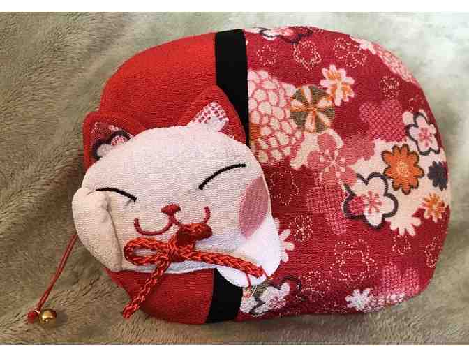 Mini cat purse in RED. Zippered top. No inner pockets.