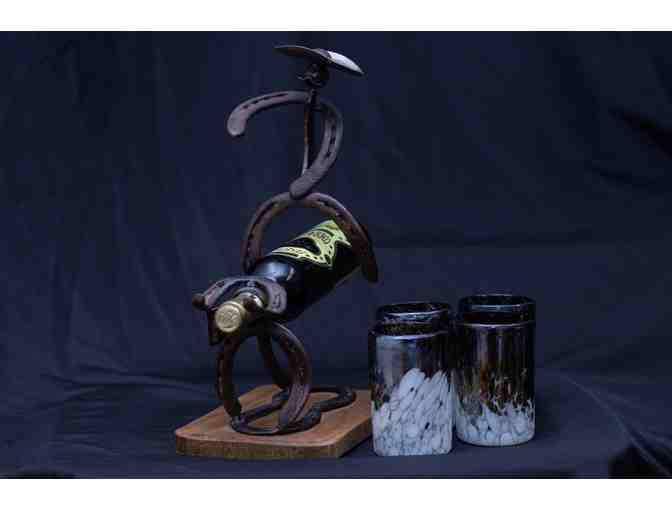 BULLRIDER WINE HOLDER AND HANDBLOWN GLASS SET