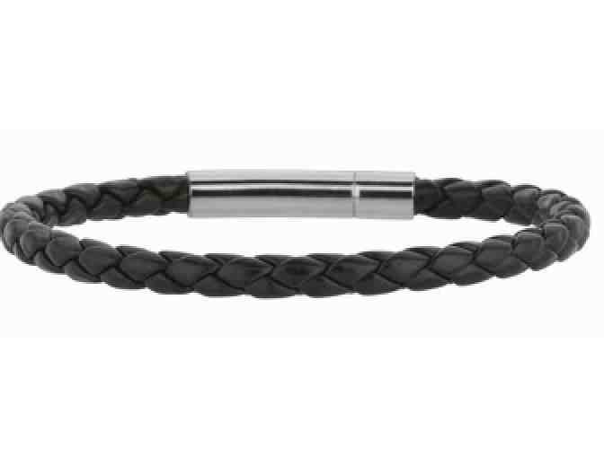 Men’s Black Woven Leather Bracelet with Stainless Steel Magnetic Clip
