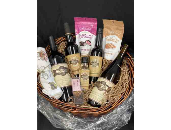 Includes: 2019 San Diego County Sunfresh Vineyard Syrah - 2020 San Diego County Chardonnay - Bernardo Winery extra fine oak barrel aged balsamic vinegar - Bernardo Winery house blend rosemary olive oil - Bernardo Winery house blend pomegranate balsamic vinegar and more.