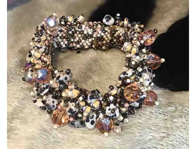 This lovely bracelet features beads and hematite stones giving it a lovely pattern that reminds me of seashells on the beach. It's held together by 2 strong magnets so it's easy to get on and off.