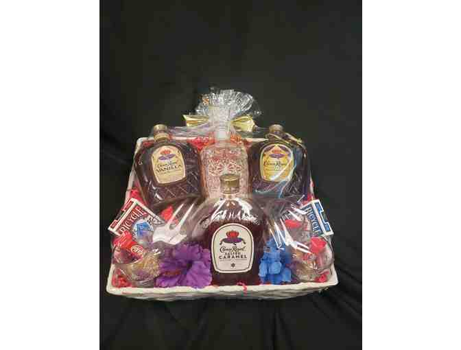 Includes: 1 bottle of Crown Royal blended Canadian whisky - 1 bottle of Crown Royal Salted Caramel - 1 bottle of Crown Royal Vanilla - 1 crystal decanter - 4 crystal whiskey glasses - 2 packs of Bicycle playing cards.