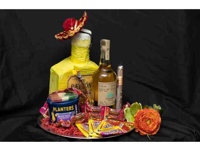 Includes: Casamigos Tequila - 2 shot glasses - 2 Olivo cigars - Planters Mix Nuts - Cocktail napkins - 1 mini pinata -1 mini sombrero.