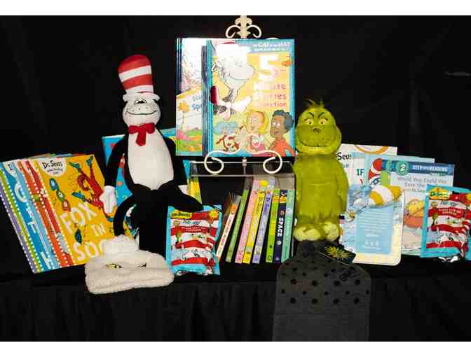 Includes: 23 assorted collections - 1 activity book - 1 coloring book - 1 doodle book - 1 picture frame - 2 plush clip on surprises - 2 grinch ski hat - 1 grinch stuffed animal - 1 cat in the hat stuffed animal.