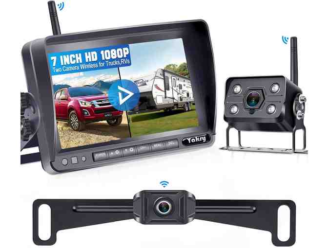 This new Yakry digital wireless backup car camera kit is the perfect solution for an older car, Minivan or SUV (not suitable for trucks or RVs or large vehicles) or for a newer model that did not come with a camera. Safe and convenient for pulling out of those tricky spaces. Camera is IP69K waterproof with HD color and has 6 White LED lights for enhanced night capability,provide greater visual security. The 4.3" monitor has a removable pedestal with adhesive for easy mounting on a flat surface. The monitor shows guidelines for easy backup.