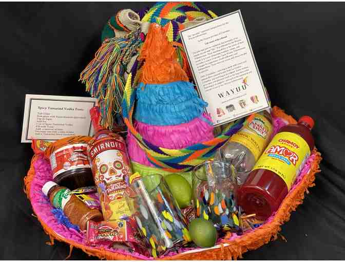 Includes: Wayuu bag - Smirnoff spicy tamarind - Chamoy Amor mild sauce - Canada Dry Tonic Water - Escarcharindo tamarindo sauce - 2 multicolor glasses made in Mexico - 1 Mexican fan - 1 mini pinata - Fiesta basket
