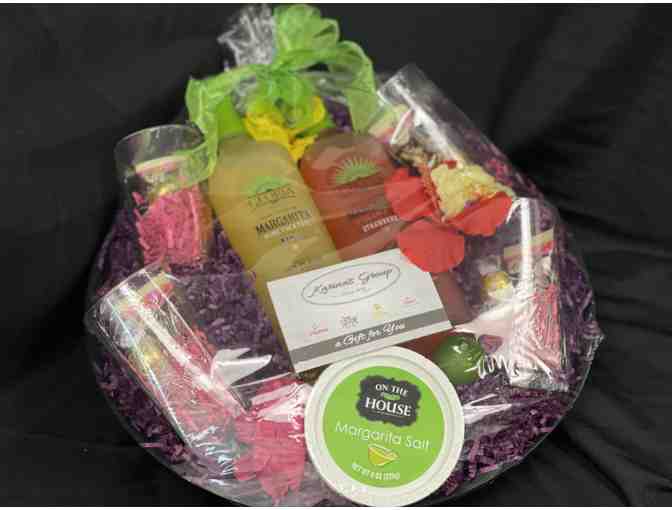 Includes: $50 Gift card to the Karinas group - Karinas, Savoie, Safron or Karina Cervices and More - Rancho La Gloria Mango Margarita wine cocktail - Rancho La Gloria Strawberry wine cocktail - 4 unique square margarita glasses - Margarita salt - Serving tray