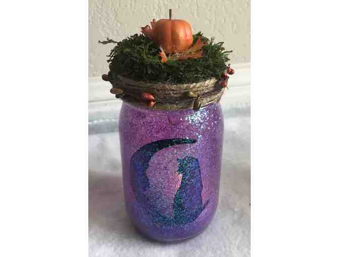 Autumn Witch Jar with Flameless Candle - Purple Cat